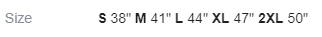 | Size | 38 | 41 | 44 | 47 | 50 |