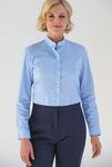 57% Polyester, 39% Cotton, 4% Elastane. Grandad collar, semi-fitted, long sleeve, single cuff, princess seams.